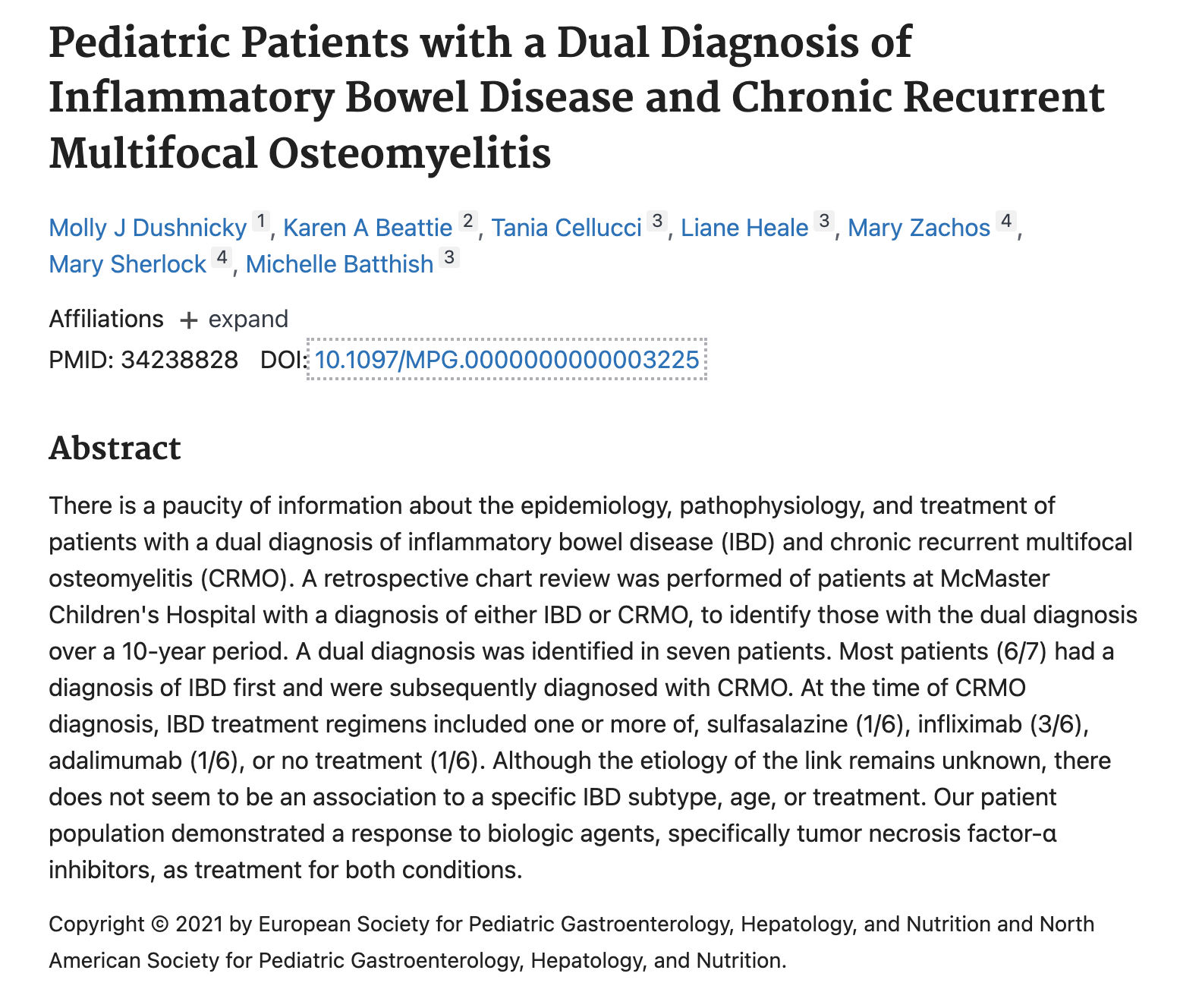 Pediatric Patients with a Dual Diagnosis of Inflammatory Bowel Disease and Chronic Recurrent Multifocal Osteomyelitis