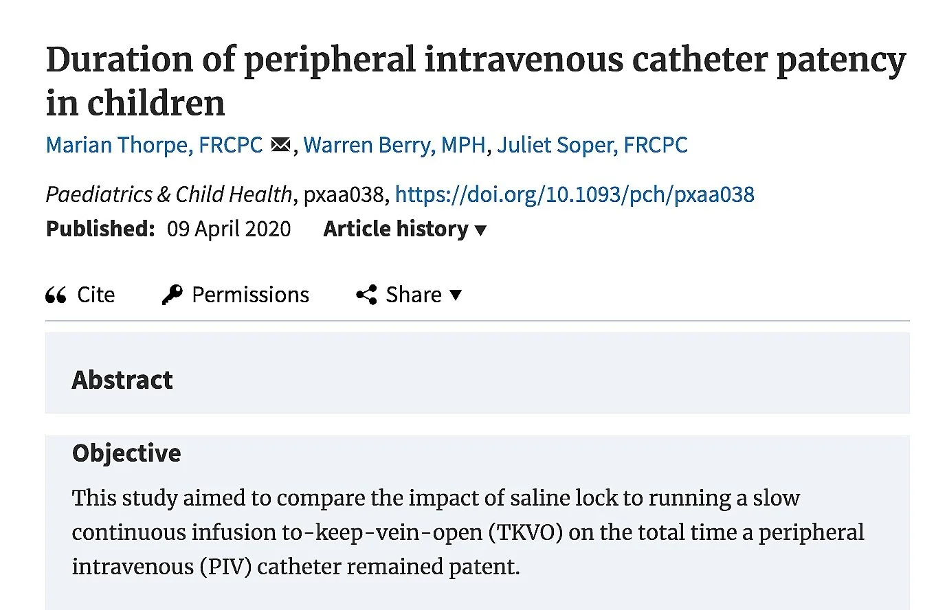 Duration of peripheral intravenous catheter patency in children