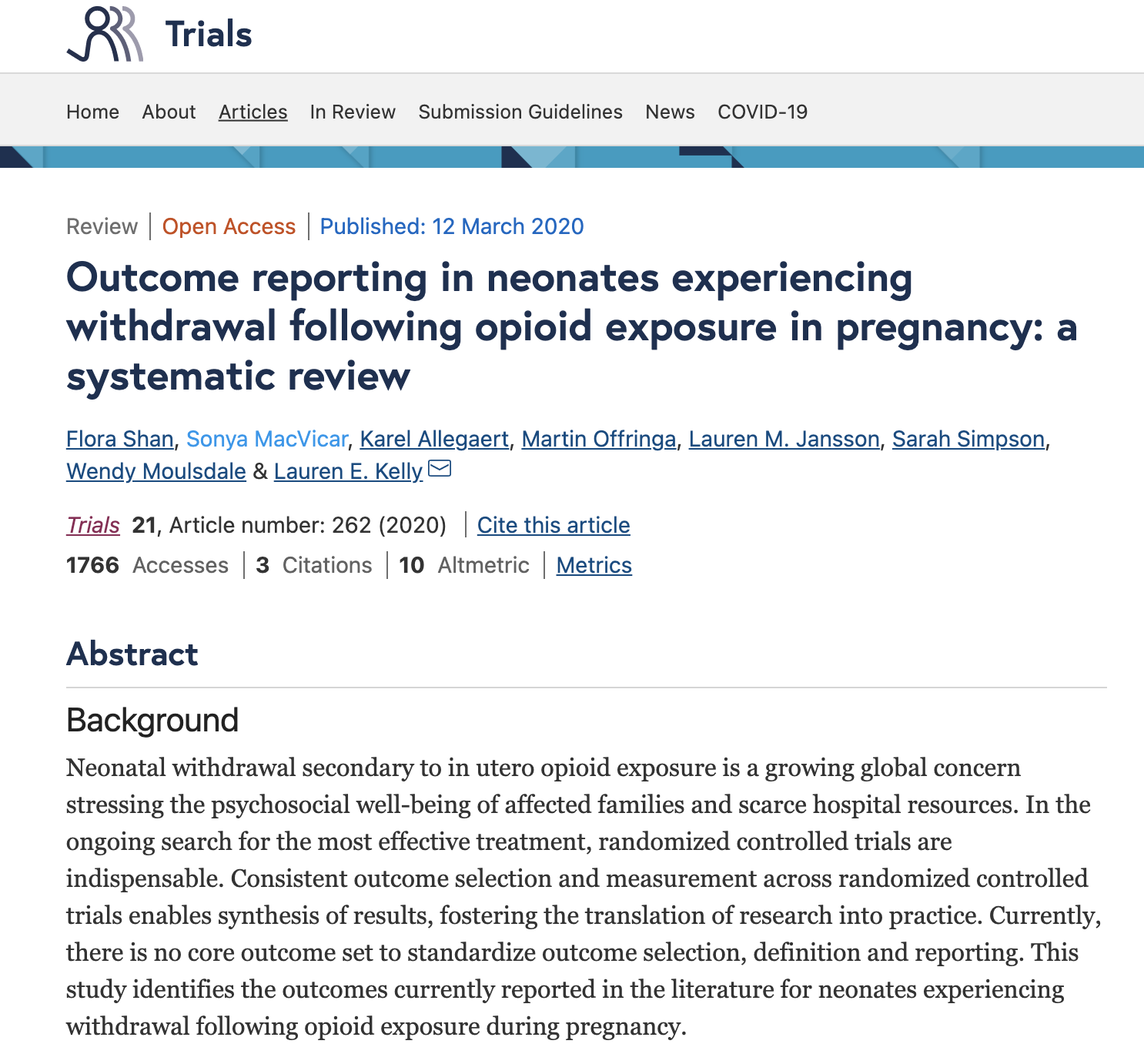 Flora Shan, Sonya MacVicar, Karel Allegaert, Martin Offringa, Lauren M. Jansson,Sarah Simpson, Wendy Moulsdale and Lauren E. Kelly
