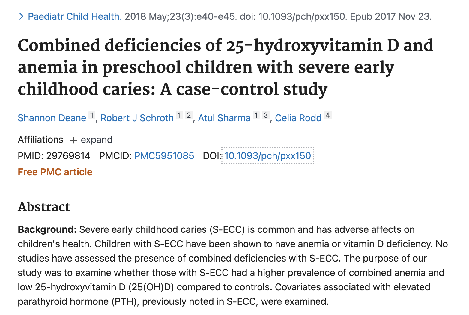 Combined deficiencies of 25-hydroxyvitamin D and anemia in preschool children with severe early childhood caries: A case-control study