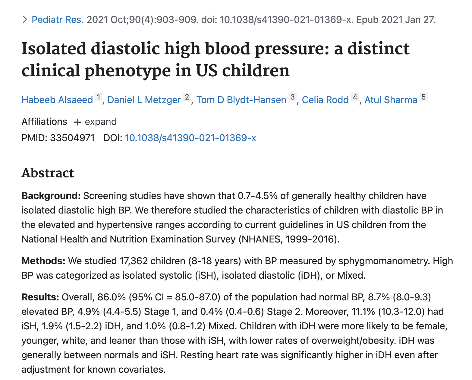 Isolated diastolic high blood pressure: a distinct clinical phenotype in US children