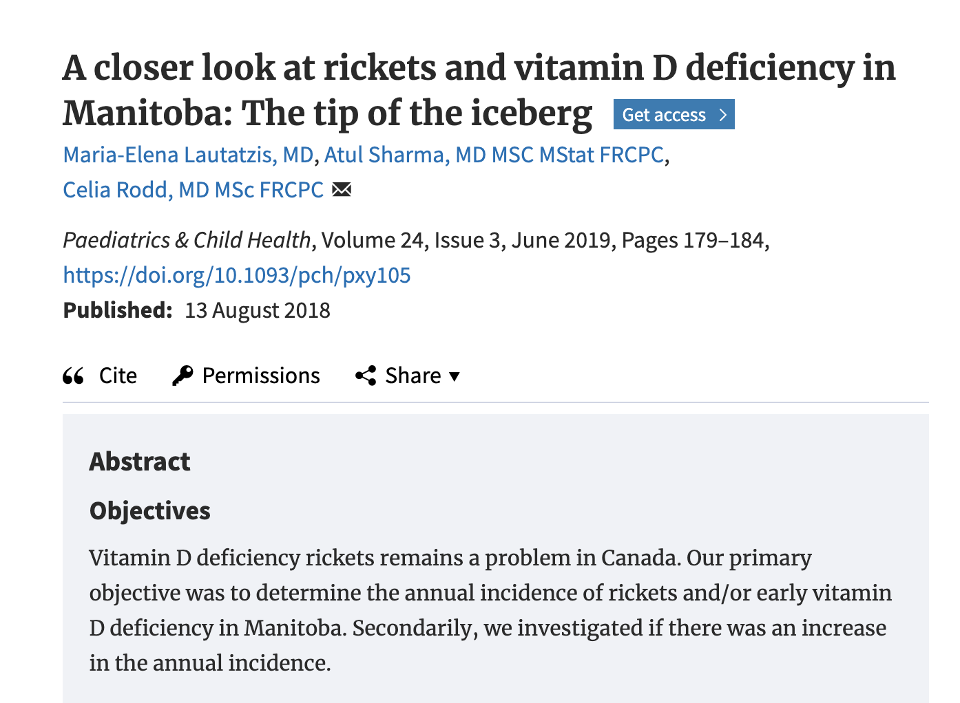 A closer look at rickets and vitamin D deficiency in Manitoba: The tip of the iceberg